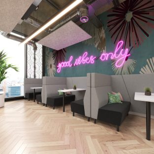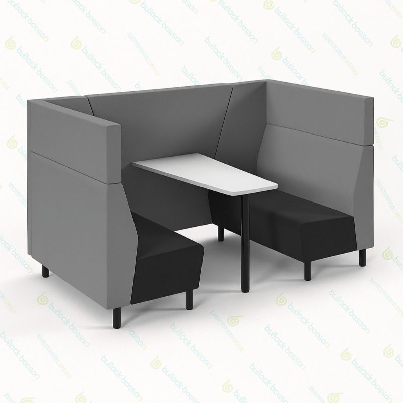 Large sides of the Portal high booth offer effective noise reduction and privacy.